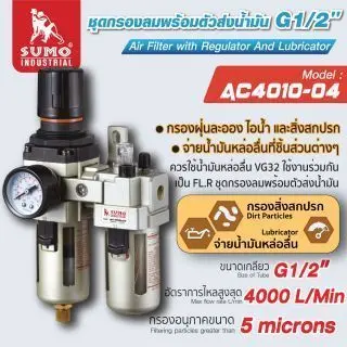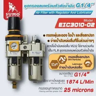 - ชุดกรองลมจ่ายน้ำมัน C202 1/4" (2 หุน) THB ยี่ห้อ SUMO ตั้งลมพร้อมเกจ์ ใช้สำหรับการบำรุงรักษาอุปกรณ์เครื่องมือลม