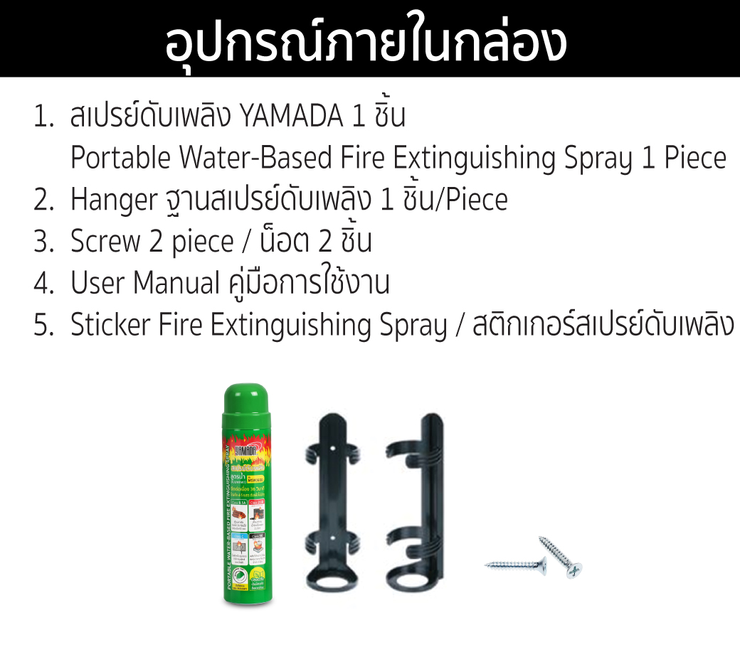 - สเปรย์ดับเพลิง ใช้งานง่ายดับเพลิงได้ทันที สามารถใช้ได้กับบุคคลทั่วไป