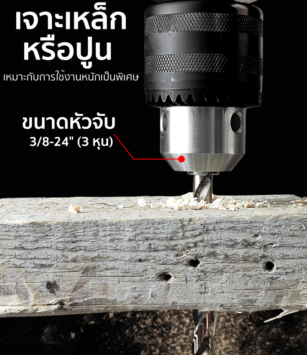 ขนาดหัวจับ (Chuck size)3/8−24"