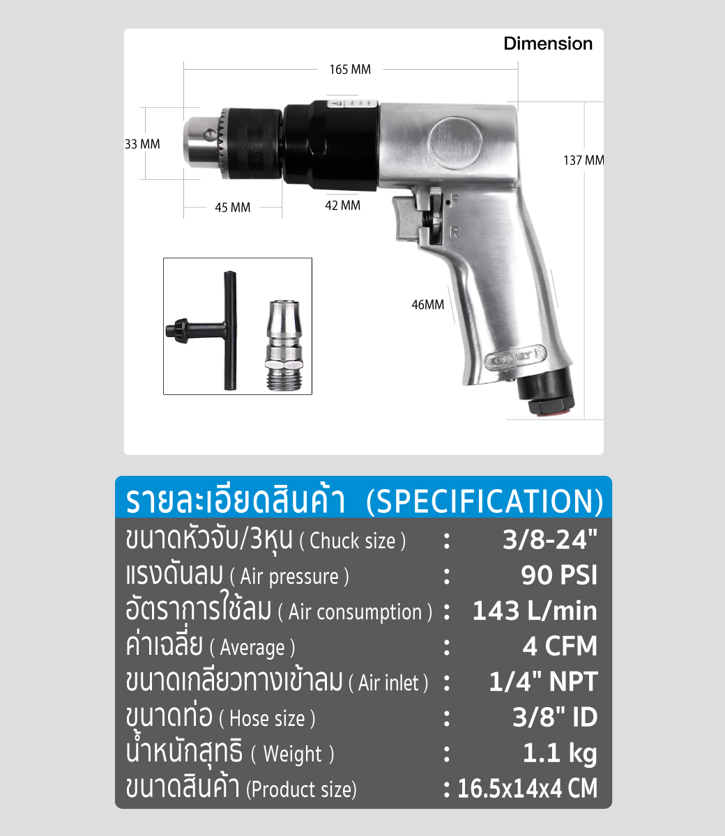 สว่านลมด้ามปืน 9.5 mm รุ่น D03-9.5