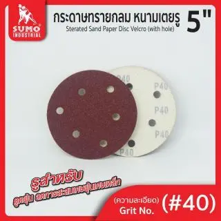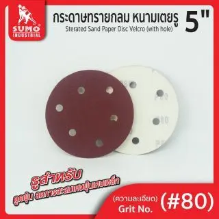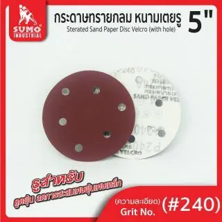 กระดาษทรายกลม หนามเตย 5"x6รู สีแดง #180